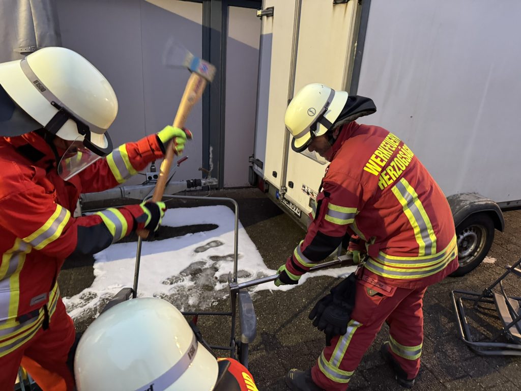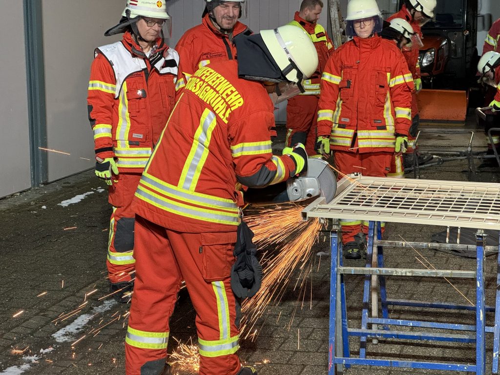 Im Januar war „Handwerk Feuerwehr“ das Thema der Gesamtübung. Es wurde mit Handwerkzeug und Maschinen (u.a. Säbelsäge und Trennschleifer) geübt und das Erlernte an verschiedenen Materialien ausprobiert. Zusätzlich wurden die entsprechenden Sicherheitsvorschriften und die Unfallverhütungsvorschrift thematisiert. Rundum eine gelungene Übung für alle Teilnehmer.