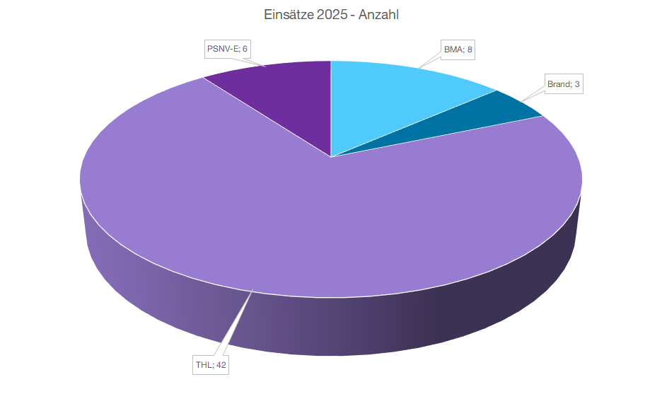 An insgesamt 15 Lehrgängen haben 30 Einsatzkräfte im Jahr 2025 teilgenommen. Dafür vielen Dank an die Teilnehmer, aber auch an die Ausbilder und die durchführenden Feuerwehren – hier sei die Feuerwehr Peiting erwähnt, bei der wir einige Lehrgänge absolvieren durften. Außerdem fand wieder eine Leistungsprüfung mit einer Gruppe statt, in diesem Jahr soll noch eine weitere Gruppe eine Leistungsprüfung ablegen.