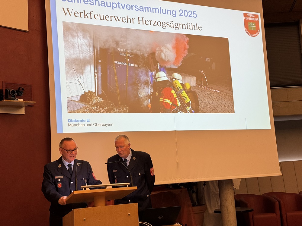 Am 12. Februar 2026 fand die Jahreshauptversammlung der Werkfeuerwehr Herzogsägmühle statt. Die Vorsitzende Romina Kuschmierz begrüßte den Geschäftsführer Herr Rock, den Verwaltungschef Thomas Buchner, die Kommandanten Stefan Guffler (Birkland) und Klaus Straub (Peiting), den Kreisbrandmeister Michael Christa, sowie die aktiven und passiven Mitglieder der Werkfeuerwehr. Wir blicken auf ein bewegtes Jahr zurück, führt sie weiter aus, mit vielen Veränderungen, aber die Werkfeuerwehr bleibt Herzogsägmühle.