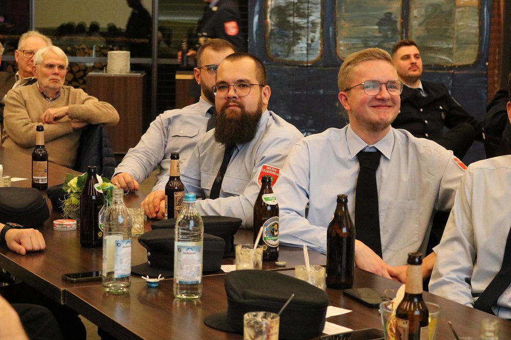 Die Fachberater PSNV-E Matthias Lösch und Dirk Wollenweber stellten den Bericht der PSNV-E vor. 11 mal wurde die Psychosoziale Notfallversorgung für Einsatzkräfte (PSNV-E) benötigt, entweder während oder nach einem Einsatz. 11 weitere Male wurden Schulungen bei Lehrgängen, vor allem bei der Modularen Truppausbildung MTA (Feuerwehrgrundlehrgang), durchgeführt. Darüber hinaus gab es noch Treffen der PSNV-E-Gruppe zur Schulung, Besprechung oder Gemeinschaftspflege, sowie eine Großübung mit Beteiligung der PSNV. Alles zusammen waren es rund 100 Stunden in der PSNV-E.
