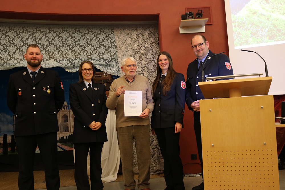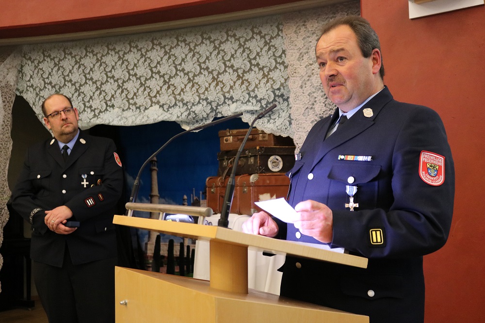 Danach freute sich die Vorsitzende Romina Kuschmierz über zwei Vereinsehrungen: für 20 Jahre Mitgliedschaft in der Werkfeuerwehr wurde Gerd Schwarzbauer geehrt; Ehrenmitglied Will M. Fichtner ist sogar ganze 50 Jahre Mitglied in der Werkfeuerwehr und hat sich in vielen Funktionen und Aufgaben, als Gruppenführer, Schriftführer und Mitglied der Vorstandschaft unser aller Anerkennung verdient.